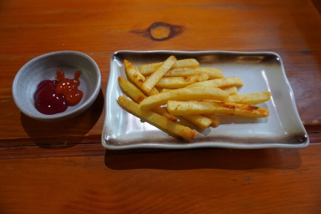 私はアルコールが飲めないので、代わりにフライドポテトと交換。