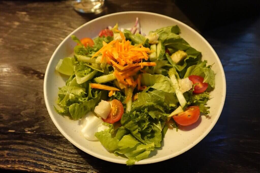 この日の夕食はサラダ・魚料理・デザートの3コース。どれも美味しく、会話も弾みながら和やかなひとときを過ごしました。