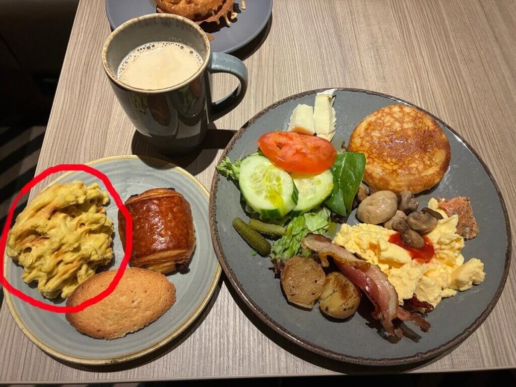 朝食は予想を裏切るほど豪華で、パン・サラダ・ホットミール・スイーツまで所狭しと並んでいました。