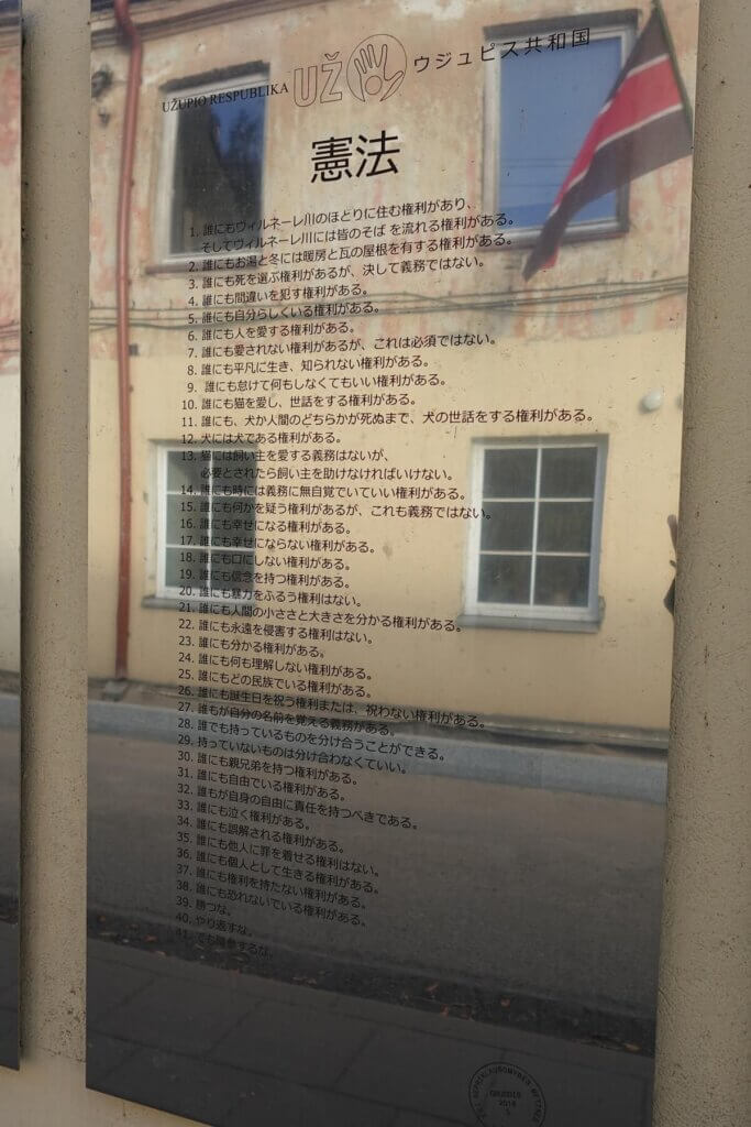 独自の「憲法」を掲げるアートな街で、ユーモアあふれる条文が並んでいます。