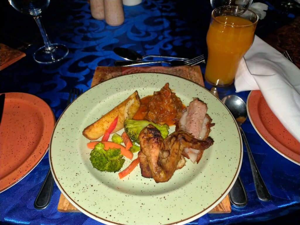 夕食はホテル近くのレストランで、ショーを見ながらの屋外ビュッフェ。