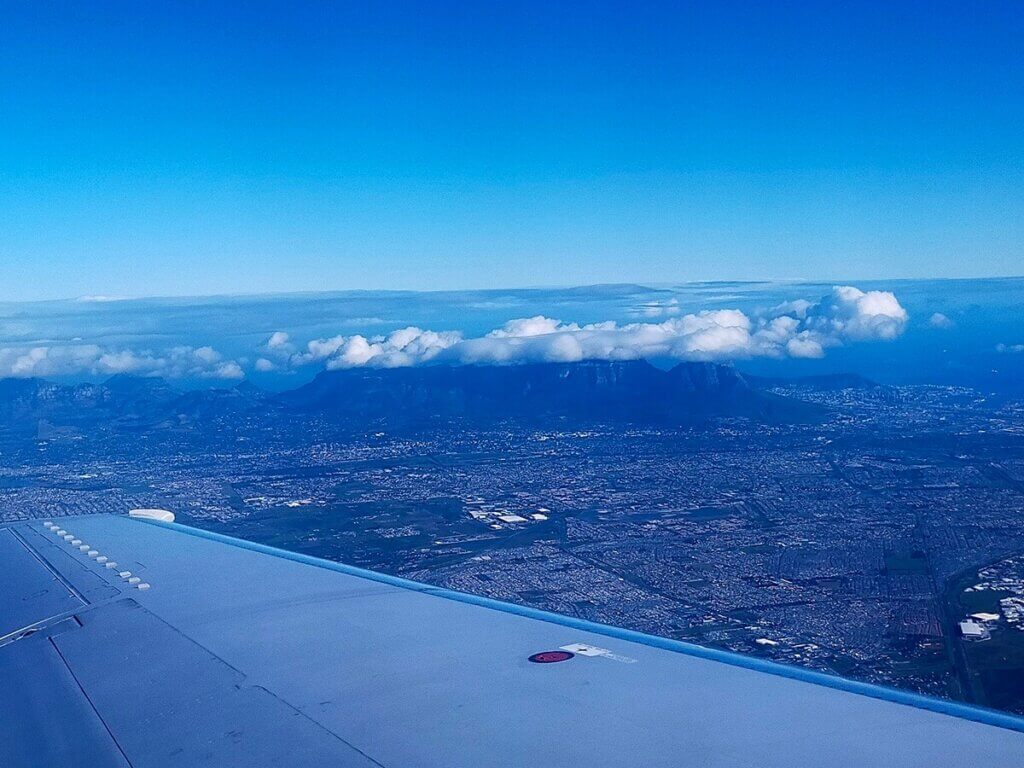離陸後しばらくして、窓の外にテーブルマウンテンが見えました。