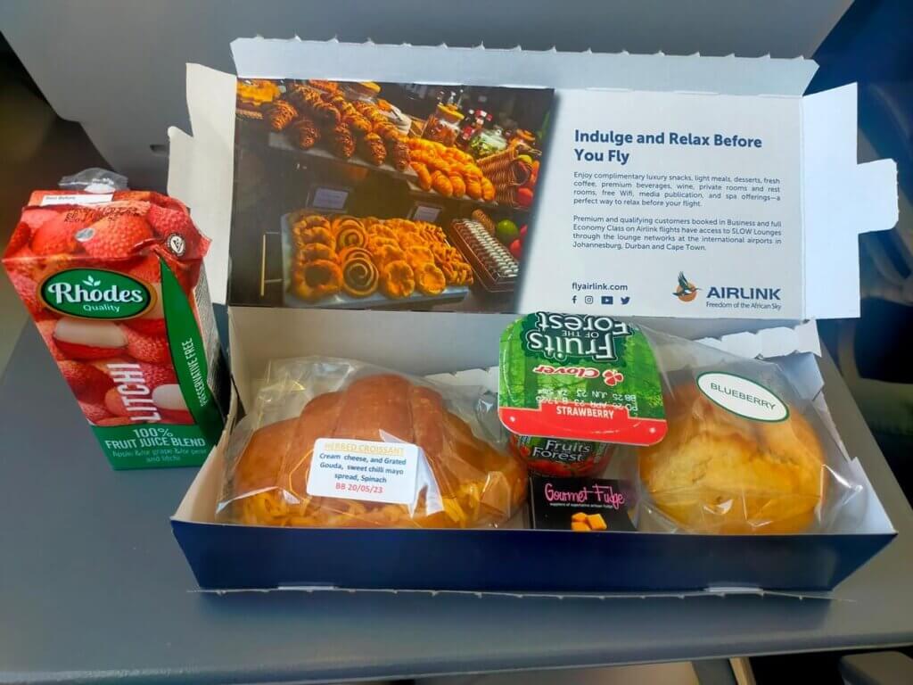 バスでケープタウン空港へ向かい、9時45分発のエアリンク(Airlink)4Z-0390便でビクトリアフォールズへ。飛行時間は約2時間55分。機内では軽食が1回提供されました。