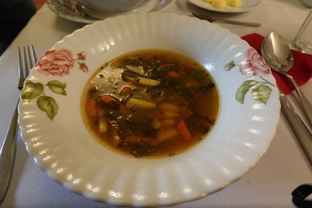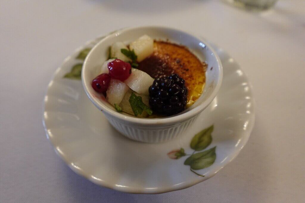 スープはやさしい味わいで体が温まり、デザートのクレームブリュレは表面がパリッと香ばしく、まさに絶品。