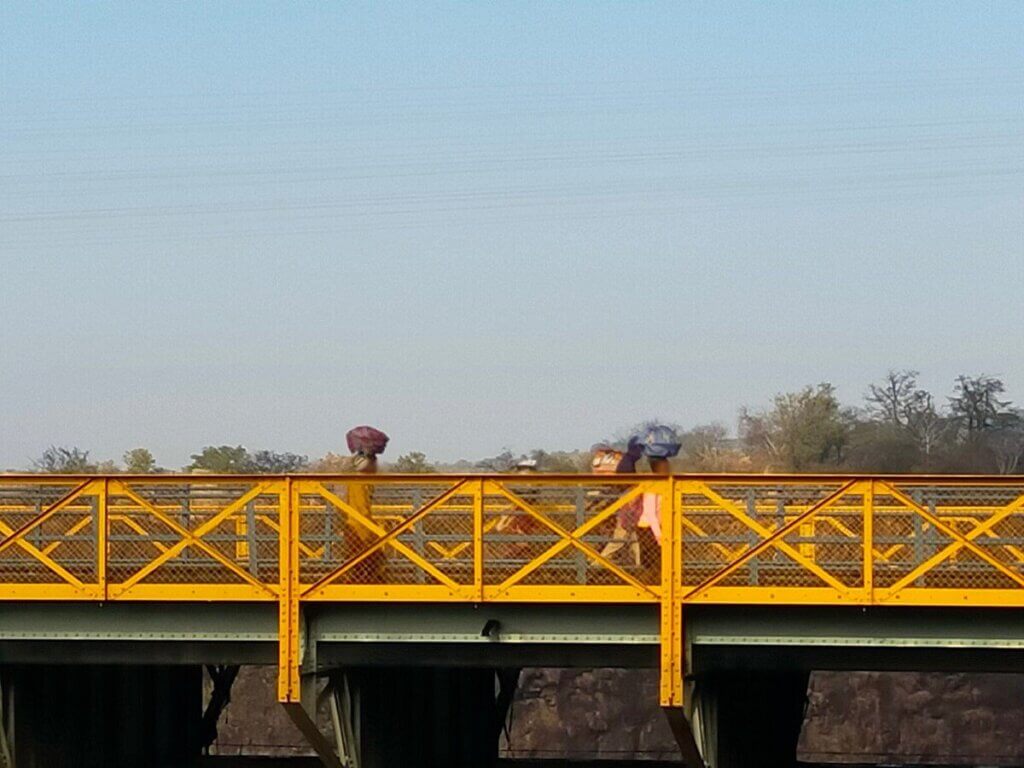 よく見ると、頭に荷物を乗せて橋を歩く女性たちの姿。