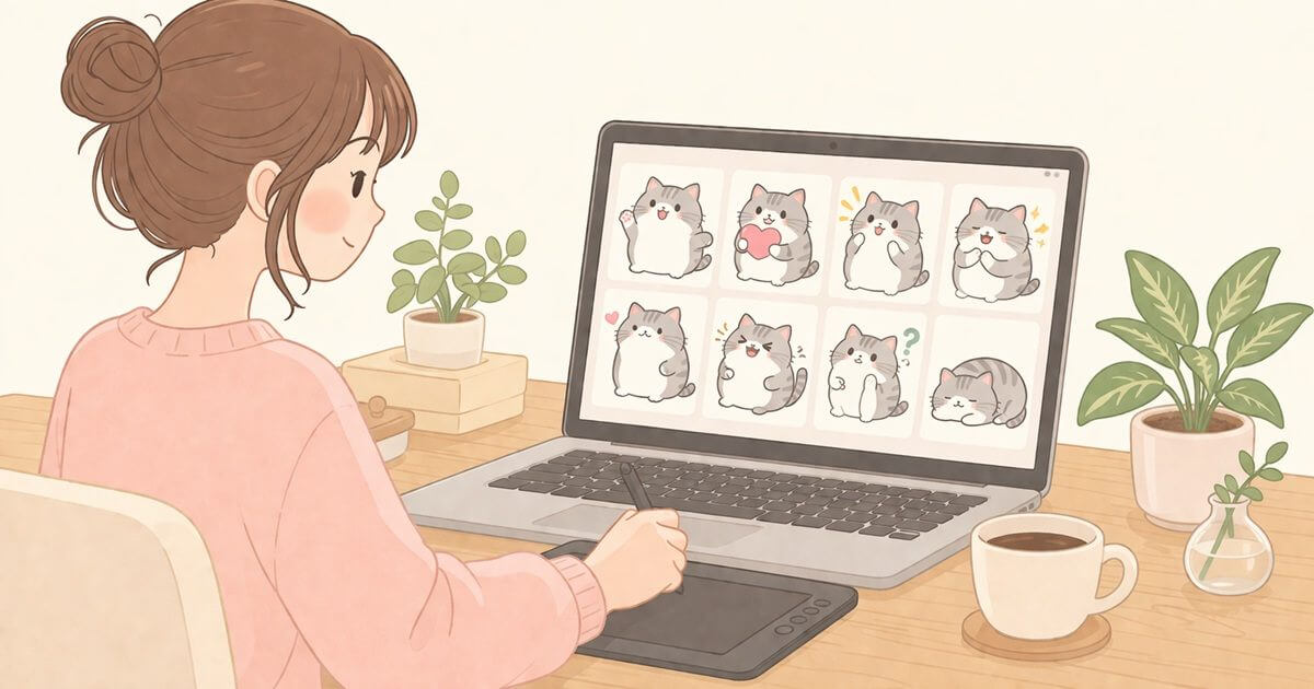 私もそうでした。「絵が描けないからスタンプは無理」「申請が難しそう」と思っていました。でも、始めてしまえば、目の前の作業を一つずつこなしていくだけです。