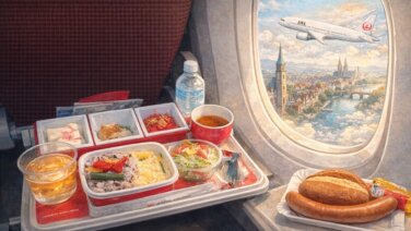 成田空港からJAL直行便でフランクフルトへ。初めてのJAL国際線は安心感があり、機内食も想像以上に美味しくて大満足。長時間フライトでも快適に過ごせた、ドイツ旅行1日目の記録です。